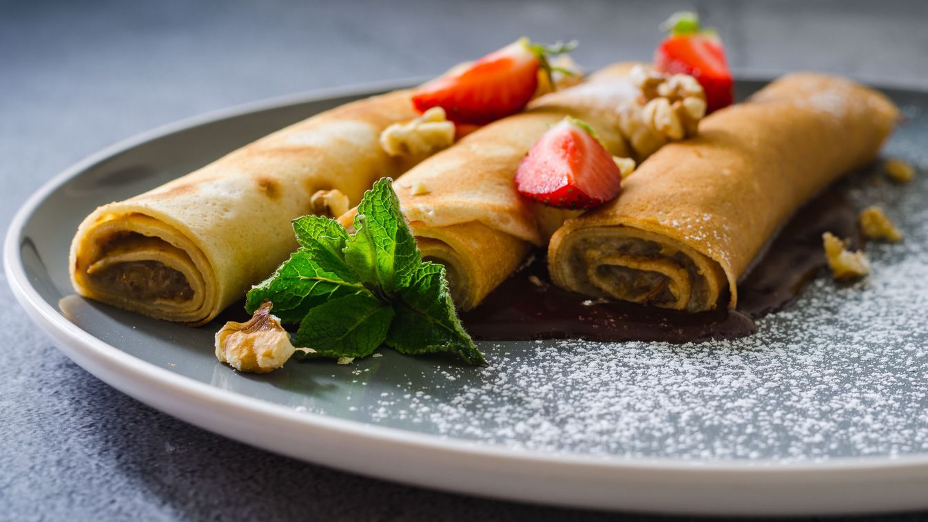 A palacsintákat a krémmel megtöltjük, a széleket 2 cm-re hagyjuk üresen, majd feltekerjük. Tálalás előtt a végeket levághatjuk a szép megjelenésért, opcionálisan félbevágva is kínálhatjuk.
